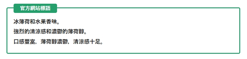 *極為濃厚的薄荷醇香和淡淡的水果香味.