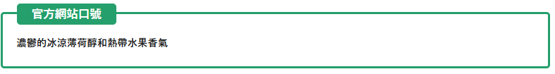 這種口味的整體特點是具有冰涼辛辣並具有強烈衝擊力的薄荷醇味道,淡淡的芒果香氣.