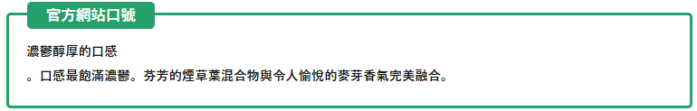 根據它混合著麥芽的香氣,但一旦你習慣了吸食它,你就不會注意到濃烈的香氣,而且它的味道適合所有人,尤其重令人滿意的吸食體驗。